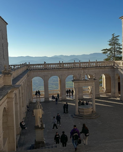We ate at the town of Cassino first before driving up the hill. The road up the hill is winding and you will often see the edge but the road is in good condition. There are several pull outs along the road to let other drivers pass and to take in the view. There are several mountains here so the view is stunning.