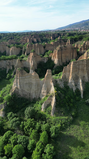 Man mano che il drone si avvicina alle Balze del Valdarno, il panorama si apre e mi ritrovo a volare sopra una vasta pianura, dove il fiume si snoda in mezzo ai campi e alle colline. In lontananza, scorgo i profili dei villaggi e delle città che si stagliano sulle colline circostanti.
