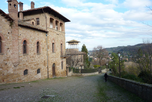 Castell’Arquato è un borgo d’arte di rara bellezza pervaso di atmosfere d’altri tempi. Ha basse case a schiera color mattone e vicoli stretti in acciottolato che portano alla cima del colle, dove si apre l’ampia piazza monumentale che sembra incredibile trovare in un posto così, in questa Val d’Arda che sfuma da un lato verso la via Emilia e la Padania, dall’altro verso i colli di Vernasca (e l’Appennino) con il borgo-gioiello di Vigoleno. La parte monumentale è ricchissima. La rocca Viscontea, voluta dal comune di Piacenza ed eretta da Luchino Visconti tra 1342 e 1349, è una delle più notevoli fabbriche militari del Nord Italia. Ha una pianta a L con la cinta minore di mura che dà sulla piazza. Oltre ai muri esterni oggi restano le quattro torri difensive, di cui solo quella orientale è integra. Su tutto il complesso domina la mole del dongione, che vale la salita per lo splendido panorama e il museo medievale che vi è allestito. Nella piazza si resta affascinati anche dal gruppo absidale della collegiata, una delle chiese più antiche del territorio, già esistente nel 756 con funzione di pieve battesimale, ricostruita dopo il terremoto del 1117 e consacrata nel 1122. Il fonte battesimale in pietra è databile VII-VIII sec., mentre il bel portale strombato, l’architrave e la lunetta scolpita sono del XII sec. Sul lato sinistro della chiesa scorre il portico tre-quattrocentesco detto “del Paradiso” perché ospita le tombe di personaggi illustri. La parte più affascinante è comunque il gioco volumetrico delle quattro absidi contrapposto al tetto a capanna della chiesa e al campanile quadrato. Il 1292 è l’anno di costruzione del palazzo del Podestà, sul lato nord della piazza monumentale. L’anima più antica è data dal mastio rettangolare, al quale dal quattrocento sono stati aggiunti corpi successivi, come la Loggetta dei Notari. Dà armonia alla mole della facciata la scalinata esterna, munita di parapetto nel XV sec. Particolare è la torre pentagonale, presente già nel progetto originale. Questa commistione e stratificazione di sti non toglie nulla al fascino della costruzione. Da vedere, inoltre, nel quartiere di Monteguzzo il Torrione Farnese, eretto intorno al 1530 e rimasto incompiuto, pare, per la morte del duca Bosio II Sforza. Costruito interamente in laterizio, faceva parte del sistema difensivo del borgo con funzioni militari, anche se nel complesso ha una certa grazia che lo rende attraente e misterioso, per via dei passaggi segreti di cui si favoleggia. Passaggi segreti che dovevano condurre in aperta campagna o al palazzo del Duca, nome che prende nel seicento il palazzo di giustizia edificato nel 1292. È dello stesso periodo la Fontana del Duca, ancora in funzione e fino al secolo scorso usata come lavatoio pubblico. Di epoca cinquecentesca è l’ospedale di Santo Spirito, che ospita il Museo Geologico. Poco distante il Museo Illica, dedicato al librettista di Puccini nato e vissuto qui. Della robusta cinta muraria innalzata nel 1342 dal duca Azzo Visconti oggi restano solo due delle quattro primitive porte d’accesso, una molto rimaneggiata nel XVII sec., l’altra - la porta di Sasso - originaria dell’epoca viscontea. Ora non resta che perdersi nella trama dei vicoli e delle stradine che rendono così piacevole passeggiare per...