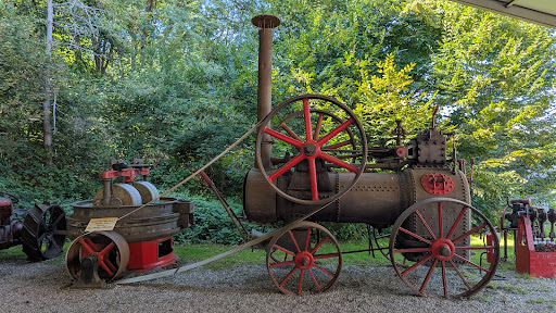 Le musée du facteur Cheval-Vapeur. A l'extérieur sur des hectares d'herbages c'est un capharnaüm de véhicules roulants ou même volants, on imagine que c'est l'oeuvre soit d'un poète un peu illuminé soit d'un collectionneur compulsif de tout engin depuis 1850. Un char français rouillé cotoie une cinquantaine de mobylettes hors d'âge, plus loin un énorme tracteur à vapeur de 150 ans en état de marche fait la conversation avec une locomotive, un monstrueux camion amphibie allemand de la dernière guerre et, pour faire bon poids, un chasseur-bombardier italien. Passé une magnifique moissonneuse-batteuse en bois et en parfait état, on tombe sur un avion russe de parachutisme qui semble s'être crashé là il y a un moment, on cherche presque les victimes. On va ainsi de surprise en surprise dans les herbages, jusqu'à faire un bout de chemin avec un jeune lapin de garenne, qui semble étonné de voir des visiteurs. Cela pour l'extérieur, où les puristes regretteront que beaucoup de véhicules soient "dans leur jus", mais quand on décide de visiter les trois salles d'exposition, c'est la claque. Essentiellement des motos et vespas état concours; par exemple une Harley 1925, des Vespa avec side-car, bien sûr le fameux attelage allemand Zundapp (et ses copies russes de 1945), un lot comme neuf de BMW, Guzzi et autres marques moins connues, mais aussi quelques autos magnifiquement restaurées tel une superbe Ford T qui pourrait figurer dans un film. Bref, à visiter absolument sans a priori au départ et se...