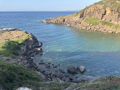 Read moreRugged and secluded cove. From the beach you can’t see any buildings. Feels isolated and remote. A nice change from the busy white sand beaches that require bookings and payments and are so crowded you can barely find a place to sit. This beach might not be as beautiful to some, but the peaceful atmosphere is unbeatable if you want to escape the crowds. Lots of room even in August. Looks like a spot locals go to. Also the cove makes the water very calm, even with windy conditions. The first few metres of water were a bit murky at times, but clearer further from shore. Great spot for snorkelling with kids, lots of fish, starfish, sea urchins and even an octopus. Rocky though so proper water shoes would help. Limited parking but we went two days in a row and didn’t have any issues, and it’s free. A bit of a difficult walk down to the beach, especially under the hot sun with heavy bags and in sandals. But...