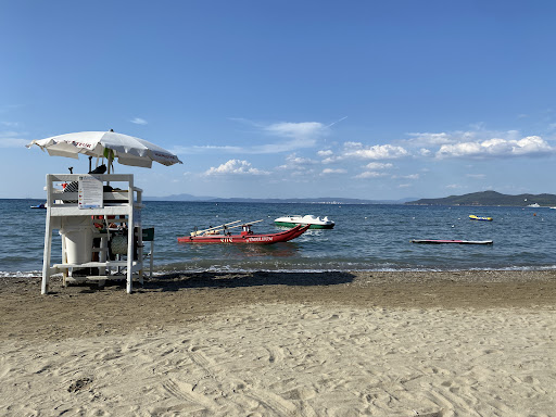 Semplicemente magnifico. Parlo cone ospite che non ha dovuto pagare nulla ma solo godersi quanto aveva attorno: ossia un mare incantevole, trasparente e piacevole, dove la profondità è perfetta, sia per i bambini - cui una saggia corda ricorda il confine e lo spazio dove fare il bagno in tranquillità -, sia per i grandi che possono superare la "barriera" e spingersi oltre. L'acqua è pulita e trasparente e nuotare è un vero piacere. Due file di ombrelloni garantiscono tranquillità e comodità , specialmente grazie al materassino sul lettino e le due sdraio dotate di braccioli. Il bar è ben fornito - ma il personale, dato il livello "vip" del luogo -, non è all'altezza della struttura. Ottima la presenza del piccolo ristorante e semplicemente magnifica la terrazza che si affaccia sulla spiaggia ed offre vista perfetta e un po' dall'alto sia su tutta la spiaggia sottostante, che sul mare che offre alla curiosità geografica i punti di Follonica (davanti) Pionbino (assai più a sinistra e riconoscibile dalle piattaforme della lavorazione acciaio), mentre sulla destra si intuisce l'insenatura della nota Cala Violina. L'isola d'Elba e le altre si mostrano generosamente invitando a riconoscerle. La terrazza, arredata con ottimi - per eleganza, solidità e comodità - divanetti bianchi, si presta sd ogni uso ed un aperitivo pare assolutamente perfetto al termine di una giornata di tuffi e nuotate. Il complesso del bagno fa parte di una realtà più vasta ed organizzata, dedicata ad un turismo assai benestante - i costi sono elevati -, ma intelligente. Ampi parcheggi, un campo da minigolf che gode dell'ombra di alti pini che caratterizzano la felice terra di Maremma, campetto da calcio e altre facilities, completano un soggiorno particolarmente piacevole. Certo, avessi dovuto pagare io, il piacere sarebbe stato assai meno...