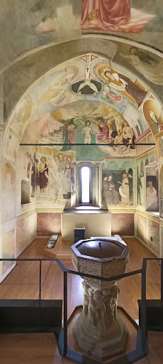 La visita guidata comprende la chiesa il museo e il magnifico Battistero. Il Battistero e la cupola dell'apside sono stati affrescati intorno al 1430 nientemeno che da Masolino da Panicale. Il cardinale Branda all'età di Sett'anni ha voluto relalarci questo stupendo angolo di Toscana in Lombardia. Uomo longevo. Visse fino a 93anni. Si sa che la sera cenava con un brodo di pollo con mollica di pane e un bicchiere di vino. Sarà questa la ricetta della longevità? La nostra bravissima guida ci ha illustrato in modo sapiente i dipinti del ciclo dedicato alla Vergine in chiesa e quelli dedicati alla vita di san Giovanni in battistero. Anche il museo merita una attenta visita. Il tutto è visitabile dal mercoledì alla domenica al modico prezzo di 4euro. Da scoprire salendo per le scalette del borgo antico di Castiglione Olona in...