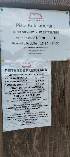 Read moreUn luogo molto bello adatto a famiglie e giornata di Picnik, La pista da Bob è divertente anche se c'è fila è abbastanza scorrevole il personale è giovane e cordiale, è adatta a bambini anche piccolissimi vi consiglio in caso di neonati di portare con voi un marsupio per neonati, si paga in contanti!! Le comodità sono poche ma ci sono 2 bar con servizi e cucina. Nelle vicinanze è possibile prendere il sole e stendersi un po' sulla pista da sci, uno dei bar ha dei piccoli gazebo e panchine per chi consuma , in alternativa si possono noleggiare ombrelloni e lettini, c'è il tiro con l'arco e tappeto elastico tutto molto vicino.