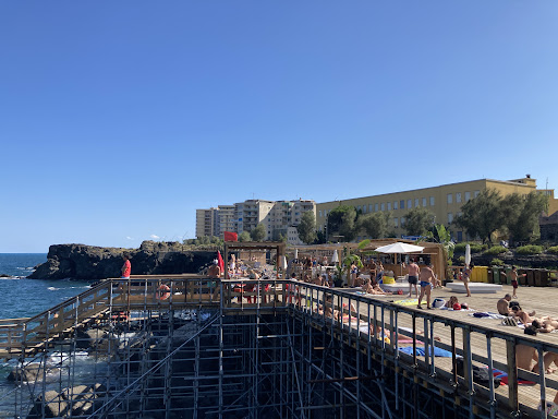 Read moreÈ un lido vero e proprio, con tutti i servizi necessari: bagni, spogliatoi, docce, bar, bagnini, sdraio (4 euro intera giornata) ma senza ombrellone, l'immancabile signore che vende il cocco, per )per l'accesso al mare 3 scalette e una scivolare per permettere l'accesso in sedia a rotelle. Stranamente, nonostante si trovi accanto al porticciolo di Ognina l'acqua è quasi sempre limpida. Possibilità di parcheggio . Non ho dato 5 stelle perché non c'è nessuna zona d'ombra e nemmeno la possibilità di mettere un ombrellone, quindi la permanenza dura solo alcune ore, specialmente per...