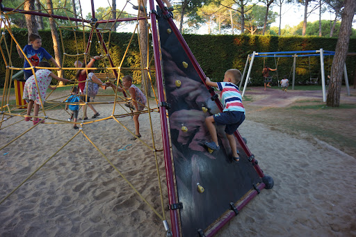 Der Spielplatz ist echt super! Unser Kind ist 2 1/2 und für ihn ist echt viel geboten gewesen. Das ging los bei den vielen Babyschaukeln und den vielen Federwiegen, die er sehr gerne genützt hat. Es gab ein kleines Häuschen, in dem er mit Sand spielen konnte, das hat er auch sehr gemocht. Allerdings wurde das falsch zusammengebaut und konnte daher nicht wirklich sinnvoll benutzt werden. Dann gab es noch den großen Rutschturm, bei dem unser Kind aber nur die kleinste Rutsche benutzt hat.