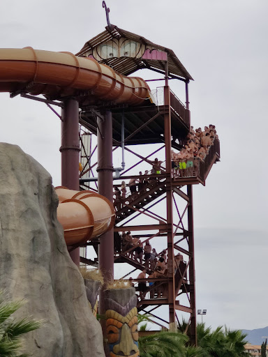 Read moreVisited Wednesday 7th August 2024 and was hoping that since it was a week day it would not be too busy. As many others correctly have mentioned, this is peek holiday and the place is totally stuffed, cramp packed 110% full of people even on a weekday. If you want to spend 150 euro to train your family at standing in a queue in bathing shorts for 30-60 minutes just for one ride down a slide that takes 10 seconds, this place it totally amazing. The water in the pools looks hazy after who knows what is in it...