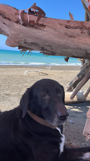 Read moreWer auf wildromantische Strände steht ist hier genau richtig. Zum Strand gelangt man über einen etwa 500 m langen Weg durch einen schattigen Pinienhain. Der Hund und man selbst findet Schatten in einer der Hütten und Hüttchen aus Schwemmholz. Der Strand ist sehr sauber, obwohl er nicht im herkömmlichen Sinne bewirtschaftet wird. Liegen und Sonnenschirme können nicht gemietet werden, aber wer braucht die schon, wenn man stattdessen Platz ohne Ende bis zum nächsten Nachbarn hat. Der Sand ist weich und recht dunkel (Achtung, es wird heiß für Füße und Pfoten). Wasser sollte man auch selbst dabei haben, auch wenn ab und an ein Eis- und Getränkeverkäufer...