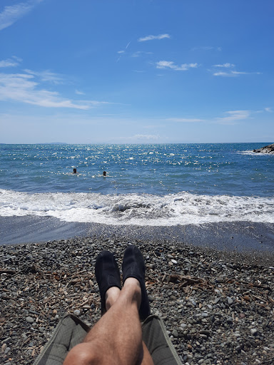 Read moreLa spiaggia non è grandissima, è prevalentemente di ghiaia e sabbia un po' scura... sono d'accordo con il fatto che offra dei bei tramonti. E sono anche d'accordo sulla bellezza del cammino in mezzo alla pineta della riserva di Tomboli. Ma chi come me l'ha appena vissuta in stagione alta, dico che durante il giorno per non parlare del sabato e domenica, trova spaventosa la quantità di gente che si riversa su questa spiaggia, anche la spiaggia libera è talmente gremita che ne toglie molto della naturale bellezza ... Ma penso che sia così un po' ovunque in questa stagione.... Chissà ad agosto.. Si gode di primo mattino con il profumo della Pineta e la sera con il silenzio, in effetti può essere molto...