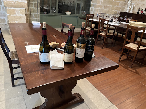 Read moreNous étions à Castellana grotte et avons fait le déplacement 1 heure de route pour aller goûter quelques vins à la Masseria…Accueil plutôt froid par une jeune femme plutôt hautaine ……nous lui demandons pour une dégustation elle nous répond froidement que ce n’est pas possible et que l’on peut aller voir au fond …nous allons voir et discutons avec un américain qui se trouve devant une table avec 4 bouteilles de vin entamées donc pour une éventuelle dégustation ……nous retournons voir la personne hautaine de l’accueil et lui disons qu’il y a au fond sur une table 4 bouteilles entamées et demandons moyennant paiement de pouvoir goûter ces vins …reponse non pas possible !!! Je lui parle d’un autre vins goûté la veille dans un restaurant qui était en début du fascicule qu’elle nous a présenté et elle me répond qu’il ne l’on plus…!!! Certainement pas assez cher!! Fuyez donc cette Masseria. Juste pour votre gouverne , charmante dame qui nous avait accueilli, j’ai dans ma cave des Sassicaia, Ornellaia, Haut Brion et autres grands bourgognes Clos Vougeot, Bonnes Mares etc…Donc sachez que l’habit ne fait pas le moine chère ...