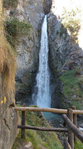 Bellissima cascata all'inizio della valle d'Ayas. Dalla strada principale è ben indicata. Parcheggio a circa 350 metri dall'inizio del sentiero , ci sono una decina di posti , posto di ricarica bici elettriche e alcuni tavoli x fare picnic con vista del fondovalle . Il sentiero è tutto in discesa, circa 500 metri con 100 metri di islivello in discesa per i primi 400 metri x cui alcuni punti pendenza elevata, scarpe da trekking consigliate, ci sono punti protetti da corrimano, i bambini riescono a fare il sentiero ma fate attenzione. Gli ultimi 100 metri sono a fianco dell'orrido, molto bello e caratteristico, merita assolutamente una visita . La cascata ha a fianco un ex miniera purtroppo abbandonata da tanti anni e non visitabile . Si arriva al punto panoramico a poche decine di metri...