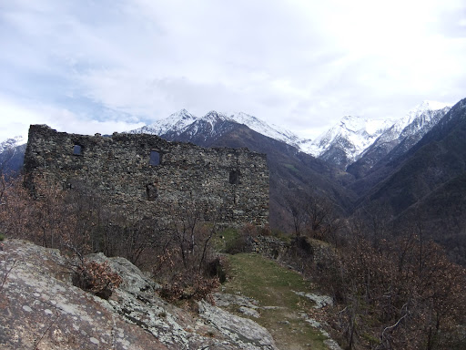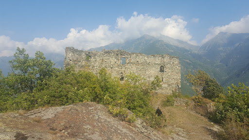 Read moreObiettivamente del castello rimane ben poco , nonostante la sua importanza storica . Qualche tratto delle mura di cinta e poco più . Noi abbiamo trovato il cancelletto di ingresso aperto e siamo entrati anche nel cortile , ma pure lì è rimasto davvero poco o niente . Il sito è comunque ancora oggi un eccellente punto panoramico sulla bassa Val d' Ayas e sul gruppo dell' Avic . Tavolo da pic nic nei pressi . Si raggiunge solo a piedi con una breve passeggiata con saliscendi dal parcheggio della Riserva Naturale del lago di Villa oppure ( un po' più ripida ) da Challand...