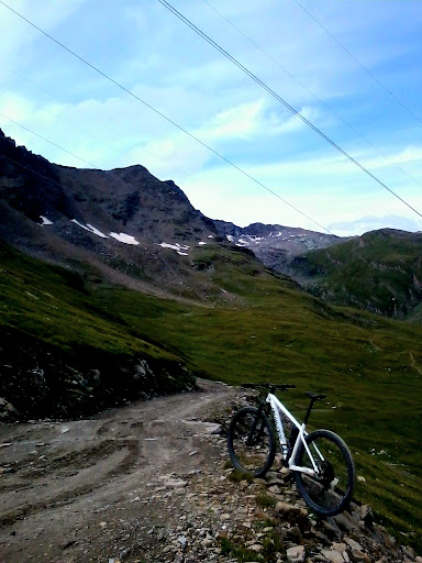 Salito in mtb da hone, 28 km totali... asfalto fino al parcheggio della frazione Mont Blanc... poi sterrata simil tappeto fino al rifugio Dondena... da qui si prende a sinistra con pendenze che diventano significative ed in circa 4 km si arriva alla Stazione della funivia.... volendo si può scendere e poi risalire su bellissima mulattiera fino al colle Larissa.... da cimetta rossa sono circa 2 km con pochi tratti bici a fianco.... discesa totalmente ciclabile in sella.... bei...