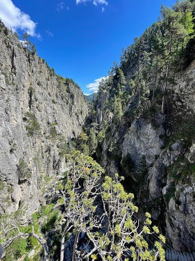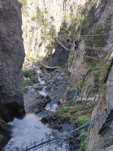 This place is quite far away from anyplace and one might pay more for road and tunnel tolls than for the attraction itself but the experience is worth the trouble, just to tick it off the bucket list. Briançon town with its vauban made a good base to be able to reach here early in the day ( they open at 9 am) and Frejus tunnel had no delays at noon to go through after finishing up at the Ponte Tibetano. Coming after 10 am may resulting waiting for long queues of people to pass in front diminishing the view and the enjoyment. The promotional video on the website does not show the slopy loose gravel paths that one has to walk through to reach the bridges. Good hiking shoes recommended. There is a safety briefing at the beginning and one gets to practice how to clip and unclip the double harness to the metal ropes . Minimum height of 120 cm to go on the bridges but preferably over 140 cm to go on the via ferrata which looked indeed tough and we couldnt do as our child was only 130 cm. In any case not suited for anyone with fear of heights or those with balance issues. Clean toilets available near the ticket/reception counter for use at beginning or end of the walk. Large free parking. And the gorge is beautiful and relatively cool even in...