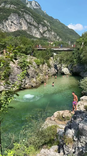 Contrà Pria, is located just outside the town of Arsiero, and is surrounded by unspoiled nature. During the year, the area is almost uninhabited, but during the summer comes alive and the shores of of the river are crowded with bathers. It's a relaxing place, perfect for a weekend trip and where to freshen in these hot summer days. Despite there being a municipal ordinance that, for safety reasons, prohibits the dips from the bridge and from the rocks of the canyon, there are always numerous daredevils who want to experience the thrill of a flight of 10 meters in the cold waters of the creek. I don't know if it was the heat, the clear water or the desire to plunge, but admiring the view from above, a shiver ran down my spine. It was a mix of fear and adrenaline. It was a thrill of freedom. Contrà Pria, is a fascinating place because it allows to dive into "Pozze of Arsiero": three zones of the creek, where the water has formed ponds, where divers leave for their explorations. In these holes, about nine meters deep, diving enthusiasts can explore the hidden corners of the rocky gorge. For those who remain on the surface, however, the beach is equipped with kiosks, beach volleyball courts, picnic areas suitable for families, groups of friends and even to pet owners who want to spend a...