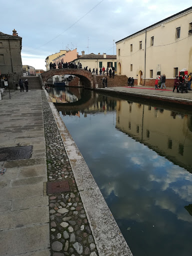 Questo ponte rappresenta il punto nevralgico di Comacchio, dato che sorge a cavallo tra i due principali canali che attraversano il centro della cittadina ferrarese. Nelle immediate vicinanze si trovano, tra l'altro, l'importante Museo della Nave 🛶 romana e il locale ufficio IAT ℹ, presso il quale è possibile reperire informazioni sul luogo e gli annessi servizi turistici. Per capire quanto e come si tratti del punto più strategico in assoluto, può essere utile (oltre che suggestivo) salire i gradini e, dalla sommità, volgere lo sguardo 👀 in tutte le direzioni; la sensazione sarà un po' quella di dominare l'intero abitato da un'insolita "plancia di comando". SPETTACOLARE 👍, come la stessa Comacchio del resto.