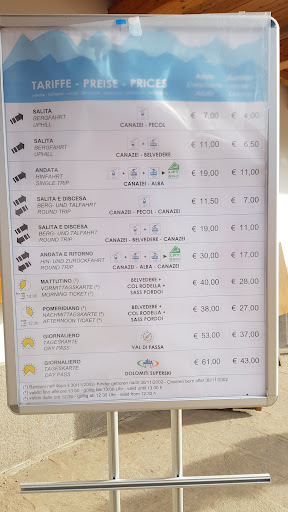 Read moreSono stato in questa stazione della cabinovia con la mia ragazza in occasione di una vacanza in Val di Fassa. Questa costruzione si trova poco fuori dal centro del paese di Canazei All'esterno, dall'altra parte della strada, è presente un ampio parcheggio per i mezzi. Di fronte all'ingresso c'è la fermata degli autobus di linea. La funivia è collegata con la zona Pecol, la prima altura sopra il paese da dove poi si possono prendere altri impianti per raggiungere tutta la zona del Dolomiti Superski. Le cabine sono poco comode se si vuole stare seduti. sono state progettate per ospitare una decina di...
