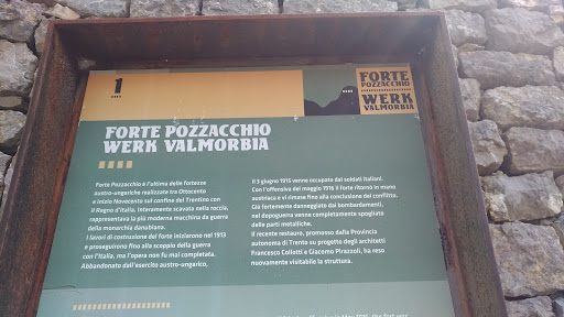 Forte Pozzacchio o Werk Valmorbia a seconda che si faccia riferimento all'impero austroungarico che lo ha fatto erigere o al regno d'Italia che lo ha, ad un certo punto, occupato. Aperto dal giovedì alla domenica in periodo estivo, e il sabato e la domenica il resto dell'anno, dalle 10 alle 18. Biglietto di ingresso 4€ adulti, 2€ bambini. Situato a pochi km da Trambileno in Vallarsa, vi si accede dopo aver lasciato l'auto al parcheggio e percorso uno dei due sentieri, o quello da 20 minuti più comodo e lineare o quello da 1 ora che ripercorre il sentiero pre-grande-guerra che collegava Pozzacchio con Valmorbia (pervorso nel bosco e sulle morene, 150mt di dislivello e se siete fortunati potrete vedere anche i caprioli). Assolutamente consigliata la visita guidata (interessantissima!) che dura un'ora e mezza e consente di visitare aree altrimenti non accessibili. La visita costa in aggiunta al biglietto 5€ per gli adulti e 3€ per i bambini. Consigliate scarpe da escursione (tanti scalini e fondo scivoloso) e kway perché all'interno è fresco e umido. Biglietteria con ristoro e toilette, si può pranzare o rilassarsi silla terrazza panoramica. Super...