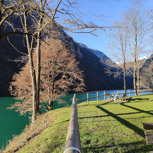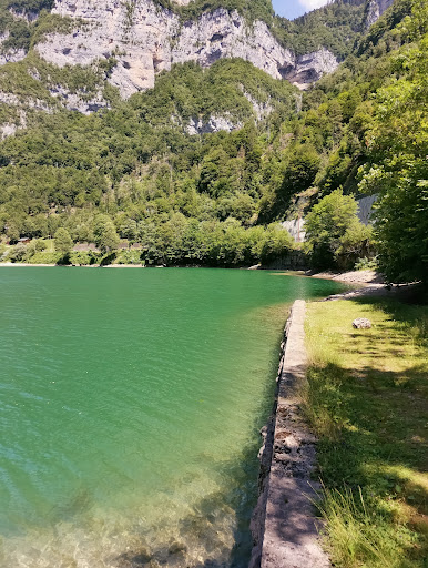 Bacino artificiale. La strada che costeggia il lago offre vedute stupende sia sulle montagne che sulle acque del Lago che sono di un verde intenso e ci sono anche aree pic-nic con panchine e tavoli ove godere dell'aria e del silenzioso cinguettio di volatili rotto dal...