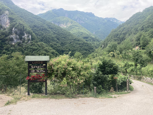 Al primo tornante ci sono alcuni posti auto gratuiti, parcheggiate, il percorso inizia qui. Seguite sempre la strada sterrata costeggiando il fiume che dopo un po' attraverserete. Oltre ci sono delle panchine a sinistra; proseguire in salita.