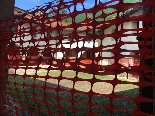 Molto particolare il chiostro a pianta pentagonale, con loggiato al pianterreno: le arcate sono rette da colonne (con capitelli) in cotto a base ottagonale. Al momento della visita (giugno 2019) erano in corso lavori.