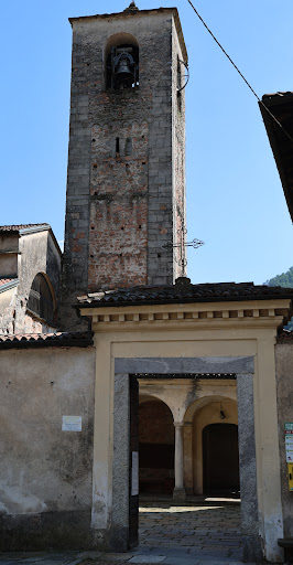 Alla facciata della chiesa è addossato un campanile molto massiccio e imponente costruito con pietra locale (porfido): – presenta lesene con cornici ad archetti ciechi e una cella vuota.