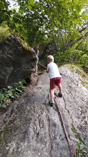 Attenzione alla seguente descrizione!!! Avevamo trovato in qualche sito internet la dicitura "percorso avventura per tutta la famiglia"... e così ci siamo addentrati (2 genitori) e 3 bimbi rispettivamente di 7, 5 e 3 anni. Il percorso è molto carino/fantasioso ma è anche molto sprotetto e con passaggi davvero avventurosi! Perciò ad un certo punto abbiamo smesso di guardare i nomi dei massi e ci siamo concentrati su "dove mettiamo i piedi?" e a tenere strette le manine dei più piccoli perchè non finissero incastrati da qualche parte! Perciò è davvero consigliabile ma a famiglie allenate (160m di dislivello, in un percorso circolare di 1700m di lunghezza), relativamente escursionistiche e con bambini NON piccoli. Come tutti consigliano è assolutamente da evitare se bagnato perchè si scivola molto facilmente. Il tratto in cui è obbligatoria l'attrezzatura alpinistica si può non fare e concludere il percorso ad anello senza aver bisogno di attrezzatura particolare. Per darvi solo un'ulteriore indicazione: ci sono due tratti in cui la roccia è appoggiata ma liscia perciò è stata presisposta una corda fissata in alto tramite la quale è possibile aiutarsi spingendo i piedi sulla roccia. Per poter salire però è necessario che le mani e i piedi siano nella posizione giusta e che adulti e bambini sappiano coordinare il movimento per tenersi alla corda e procedere con i passi sulla roccia. In aggiunta alcuni passaggi sono molto a gradoni e richiedono l'appoggio delle mani a terra per proseguire. A noi per esempio è capitato di dover passare il bimbo più piccolo dal basso verso l'alto (da un genitore all'altro!)... e nel primo tratto con la corda si é preso un po' paura e si è messo a piangere. Nel secondo tratto per fortuna aveva capito come fare e non ha più avuto paura ma la salita era di poco più di due metri e io da di sotto non arrivavo più a tenerlo e mio marito ancora non arrivava a prenderlo perciò... se avesse mollato le mani sarebbe ruzzolato giù! Concluso il tratto in salita la parte di discesa è molto più tranquilla e si può riprendere con la vista dei sassi del percorso. Adesso sono passati due mesi dal momento in cui abbiamo fatto il sentiero e i bimbi sono ancora molto entusiasti di questa avventura anche solo a sentirla nominare! Ci torneremo senz'altro. Mi raccomando però valutate bene le potenzialità della famiglia perchè mentre si sale tornare indietro sarebbe ancora più complicato. Se pensate che sia troppo complicato tuttalpiù fate solo la parte più tranquilla partendo dalla fine!