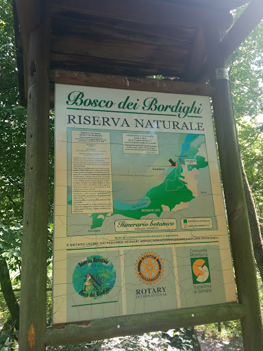 Per trovare l ingresso alla riserva, bisogna percorrete a piedi o in bici il sentiero Valtellina, sorpassando prima lo Skate Park e dopo la "cava" Cossi Costruzioni S. P. A, primo sentiero a dx indicazione sentiero per la Valtellina, dopo una 20 di min. Finalmente indicazione per l ingresso alla riserva naturale, area pic nic prima di percorrere il ponte che conduce ad un sentiero ad anello ben segnalato della riserva naturale bosco Bordighi, la sconsiglio a luglio per tutti i pollini che volano per chi è allergico, il laghetto con i girini e carino, il sentiero e ben marcato, semplice, in piano, è segnalato. Qua e là, pannelli che spiegano flora e fauna Carino per farsi un giretto di un oretta...