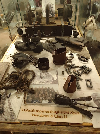 Un vero gioiello tra i piccoli musei. Bellissimo! Posto sulla via centrale di Maderno, in una porta laterale il cui azzeccatissimo allestimento la direbbe già lunga sulla ricerca e la precisione che si trovano all'interno. Ai 2 lati del portoncino sono state collocate le foto di 2 soldati in trincea, rivolti l'uno verso l'altro, come a guardarsi dalle rispettive linee (nemiche) e il "paralume" posto sopra la porta è in realtà un elmetto con una nuova... destinazione d'uso, diciamo. Bella trovata, di grande impatto, si parte già benissimo. L'interno in realtà non è enorme ma pienissimo, davvero pienissimo di reperti di ogni genere, munizioni e oggetti tra i più disparati sia di uso militare, sia, molti, anche ad uso personale. Soprattutto questi ben danno il senso di quanto la vita fosse molto diversa dagli agii moderni e la guerra davvero durissima. Particolarmente suggestive sono le ricostruzioni, soprattutto la baracca, tutta in legno, con tanto di foto in bianco e nero della fidanzata o l'angolo con i sacchi di sabbia e le munizioni. Caratteristiche anche le divise, di manifattura moderna ma fedeli al vero. Tavoli, teche e vetrinette sono zeppi non solo di mine, proiettili e armi varie ma anche di stoviglie, bottiglie, scatolette di cibo, persino oggetti curiosi che i soldati creavano col poco materiale a loro disposizione. Tanto metallo ma moltissima umanità. Ogni reperto è stato ritrovato, ripulito e trattato dai ragazzi dell'associazione, preziosi volontari e veri appassionati. Se non ci sarà troppa gente e riuscirete a far due parole con uno di loro sarà di certo una miniera di aneddoti e racconti. Passati per 2 volte sempre ci siamo trattenuti e sempre abbiamo trovato un'ottima accoglienza e tanta disponibilità. Bravissimi! Da 2 anni vedevamo il cartello del museo ma mai eravamo riusciti a trovarlo aperto, questa estate finalmente si e speriamo che la notorietà del recente programma tv porti tanti a conoscerlo e visitarlo, per non dimenticare la...