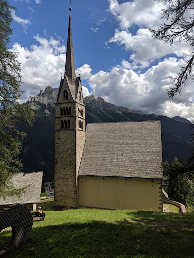 Read moreLa chiesa è una delle pievi più care alla comunità fassana. Si raggiunge, partendo dal centro di Vigo tramite una strada che diventa in seguito sentiero sterrato, passa sotto la funivia di Ciampedie e, dopo avere toccato il cimitero austro-ungarico, porta alla terrazza dove è stata edificata la chiesa. L'edificio non è visitabile all'interno se non in occasione di celebrazioni religiose o in appuntamenti particolari, comunque, dal punto di vista artistico, a parte un altare ligneo scolpito, non è particolarmente significativo. A fianco della chiesa c'è un altro piccolo edificio coevo, forse un oratorio, purtroppo...