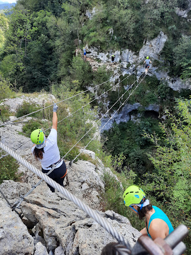 Read moreChe sorpresa! Veramente una sorpresa inaspettata. Nonostante questo parco godesse di un ottima reputazione ho potuto provare che la fama è meritata. Gestito con grande semplicità , si apprezza la sostanza e La bellezza naturalistica. Nel parco sono presenti più attrazioni dal punto di vista della escursione sono presenti almeno due percorsi indicati con un colore. Io ho scelto il percorso più lungo e meno difficoltoso. Il percorso blu partendo a destra del bar all’ingresso lasciando il rifugio paradiso a fine percorso. La parte bassa immersa nel bosco tra corsi d'acqua e cascatelle è freschissima e ombreggiata. il percorso si snoda tra ruderi di antiche fucine . Diventa così una passeggiata ludica informativa d'esplorazione . Il sentiero si inerpica poi sulla collina sempre costeggiando piccole rogge, cascatelle, polle, ponticelli e passerelle. Corsi d'acqua necessari per fornire la forza motrice Delle fucine. Poi il paesaggio cambia . la vegetazione prima diventa subalpina e poi mediterranea. E la temperatura si alza inesorabilmente proporzionalmente alla salita. Tanto che diventa Vivo il pentimento di non essersi immersi nelle fresche acque sottostanti. E i poi finalmente arriva un dolce e limpido fiume dal quale è impossibile non immergersi. La strada successivamente di inerpica in un bosco di faggi e castagni per poi scendere rapidamente al rifugio paradiso. Un semplice ma attrezzato punto di ristori llo molto frequentato. Dopo una meritata sosta Il percorso riprende nell ampio letto di un fiume secco che ad un certo punto diventa uno strettissimo Canion nel quale è stata costruita una passerella sospesa che tra cascatelle gallerie e strettoie polle e laghetti dopo 800 metro vi porta al bar da dove siamo partiti. Le attraxioni principali sono rappresentate dai ponti tibetani, dalle funicolari ad alta velocità per audaci avventuri, i laghetti dall'acqua cristallina , le ferrate vertiginose e la zona di apprendimento ludico al mondo della ferrata per bambini. Voglio sottolineare che non si paga un biglietto di ingresso. Si paga una sorta di noleggio per l'eventuale uso distribuzione di sicurezza per le ferrate. Si paga pure il lancio dalla funicolare che è spettacolare ed emozionante sotto l'attenta visione di esperti volontari scalatori. Io ho scelto il percorso blu ,più facile ed accessibile, che ritengo l'attrazione principale per bellezza paesaggistica, naturalistica, ingegneristica ( dell'acqua) e antropologica. Ci sono poi i percorsi con gradi superiori di difficoltà che non posso giudicare ma posso solo immaginario come siano ricchi di fascino. Sono rimasto stupito dalla lunghezza del percorso è dalla dimensione del parco Consiglio da provare nelle...