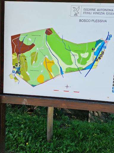 Bellissimo parco vicino al confine Sloveno, che si innalza su una collina boschiva tramite piccoli, medi e grandi sentieri che ti portano a fare giri diversi. Alla base c’è un parcheggio con, poco più in là un bel campo dotato di sedie e tavolate in legno ed un grande barbecue per fare delle grigliate nella natura, e la cosa bella è che si trova completamente all’ ombra, essendo alle pendici del bosco. I bagni pubblici puliti e dotati di tutto dal sapone alle salviette alla carta igienica e sicuramente vengono puliti al mattino. Poi per chi vuole salire in mountain bike, o chi semplicemente farsi un sentiero sono tutti tranquillamente ombreggiati e con panchine sempre disposte qua e là per riposarsi, anche dei rubinetti per dissetarsi talvolta. Il bosco di Plessiva in un certo senso è come se avesse due ingressi, infatti ieri sono entrata da quello del parcheggio e del campo con i barbecue e attraverso vari sentieri sono arrivata all’ altro punto d’ inizio o fine, che era un vero parco giochi per bambini e anche lì c’erano a disposizione tavolate e barbecue per stare assieme ( infatti c’era tanta gente sotto questo grande albero che pranzava e c’era una bella e conviviale atmosfera). Il sentiero che abbiamo percorso per arrivarci era ricco di “impalcature” per fare la ginnastica all’ aperto, al ritorno invece abbiamo preso un sentiero più grandino che portava spesso a delle piccole piazzole di sosta sempre con le sedie e i tavoli oppure cemento, cosa strana infatti dovrei documentarmi perché in quel sentiero c’erano come dei bunker antiatomici della guerra, con le varie feritoie e si può osservare come tutta la collina del bosco di Plessiva sia in realtà stata costruita, o fatta crescere molta natura sopra questo grande bunker, o base di guerra non saprei, ma si vedono molte feritoie lungo il cammino, che lo rende ancora più affascinate. Verso la fine del percorso di ritorno c’erano sulla nostra sinistra anche un bel campo da basket e uno da tennis ed erano usufruiti da persone in quel momento e mi ha fatto piacere vedere tanta gente appunto frequentare quel luogo, che dispone di tutto. Mi sono trovata bene e ho cercato di fotografare qualcosa ma alla fine mi sono goduta di più una sana e fresca...