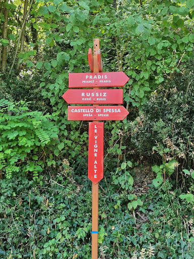 Read moreSi tratta di un sentiero che si snoda tra le colline del Collio italiano attraverso le vigne delle più note aziende vinicole locali . Partendo dal parcheggio sotto il Castello di Spessa si raggiunge Russiz inferiore, successivamente si sale alle spalle di Russiz Superiore con il panoramica sulle vigne e sulla valle dell'Isonzo e il ciglione carsico sede delle prime battaglie della prima guerra mondiale. Proseguendo in mezzo ad un bosco si oltrepassa la collina e si raggiunge la località la Subida con due ristoranti, di cui uno stellato e di un maneggio di cavalli. Il sentiero non presenta difficoltà salvo nella discesa finale in notevole pendenza ma gestibile con tempo asciutto. È sterrato, ma percorribile in bici. Per il ritorno, volendo, una strada del tutto in piano riconduce alla partenza passando per la sede produttiva e di vendita di Russiz Superiore. Tempo di percorrenza 1.30 ca. a...