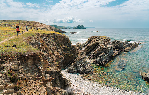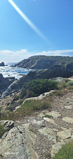 Magnifiche e solitarie scogliere si aprono allo sguardo, verso sud, filoni di chiara roccia quarzosa contrastano con lo scuro degli scisti, gli anfratti precipitano in mare con ripidi salti.