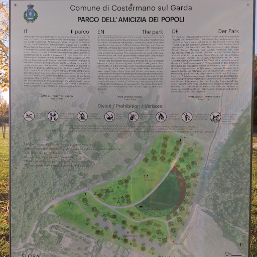 Il Parco dell'Amicizia dei Popoli è un'oasi che il Sindaco e il Consiglio Comunale hanno voluto e fa parte di un progetto più ampio che prevede la costruzione di parchi tematici distribuiti sul territorio comunale. Questo è quello che ho letto su un depliant ma, la vera sorpresa è stata constatare di persona che il risultato ottenuto va ben oltre la semplice valorizzazione del territorio. Il Parco è veramente un'oasi di pace e tranquillità. Il laghetto, nel mezzo del parco, è stato pensato e realizzato secondo le rigide regolamentazioni dei biotopi. Tutto il parco è attraversato dalla pista ciclabile che ovviamente arriva e prosegue in tutto il territorio del Comune. Qualche settimana fa ho anche assistito ad uno spettacolo di balletti e ho visto, su una locandina, che sono previsti molti eventi, del resto la struttura che circonda parte del lago è stata proprio pensata come anfiteatro per accogliere pubblico. Merita una visita e, perché no, lasciando l'auto in uno dei parcheggi e scaricando la bici è possibile percorrere una delle piste ciclabili ad anello e, partire e tornare facendo un bellissimo giro. Provare...