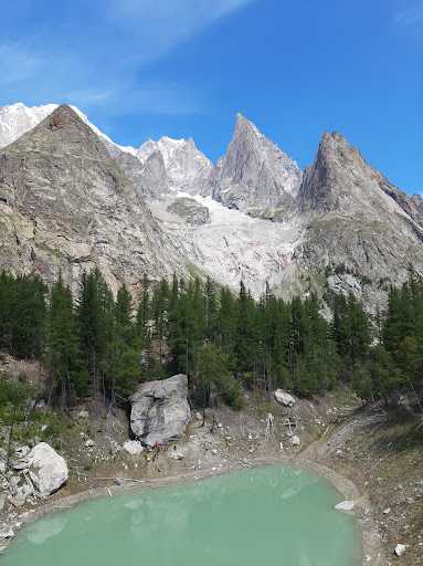 Da non confondere con il "Lago del Miage", situato vicino ma raggiungibile con un altro sentiero. Ad agosto 2021, il lago di origine glaciale è molto ristretto nelle dimensioni e non ne vale l'ora e 45 di cammino (facile) dal camping del Miage. Se dovessi scegliere dove riandare al bivio Combal/Miage (dritto dopo il ponte) e questo lago (il sentiero a destra) sceglierei senza dubbio la prima opzione. Piacevole nonostante tutto la vista...