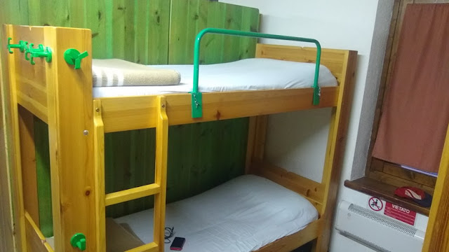 We arrived after a very long walk and even though we had made reservations in advance, the woman at the front desk said there was nothing in our name. Upon insistence and proof that we did have reservations, she did (reluctantly) give us room in the dortoir. The dortoirs are spacious and clean, which is a plus. The showers however had a 2 minute timer, which they hadn't told us about, so I was al soaped up when the water stopped. I had to rinse myself under the communal sink, just absurd. I only need water, not hot water, and they have a direct flow from the waterfall so surely there is no shortage. The food is okay, but substanderd compared to other refuges. We wanted to play some board games after dinner, but were chased out of the bar/restaurant (only place with tables) at 8:45pm because they were going to close. People standing outside talking had to go inside because everything closed at 9pm. So you had no choice but to lie in...