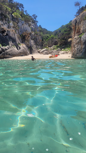 Read moreAuf der Strecke von Cala Luna nach Cala Gonone führt ein sehr bewachsener, steiniger Weg durch den Wald. Nach spätestens 10 Minuten ist man an einem herrlichen feinsandigen kleinen Paradies Strand. Mitte Oktober an einem Samstag Nachmittag waren eine Handvoll Leute da. Sehr zu empfehlen, auch zum Schnorcheln, aber vor allem einfach tolles Lagunen feeling...