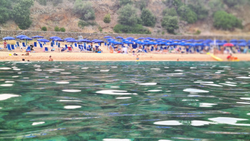 Read moreWonderful beach in a beautiful little Sardinian seaside town. We hired a car to get here from Olbia but we didn't need it as the town had such a relaxing vibe simply flitted between beach, pool, boat and restaurants all week. Don't miss the amazing "4 Mori" restaurant! This beach has a part allocated to the resort on the cliffs above but there is plenty of space for everyone else. The sea is idyllic lots of small fish around so bring a snorkel and some dried bread to have some fish feeding underwater fun. Kayak, pedalo, jetski hire also available on this beach and there is a bar tucked away at the end...