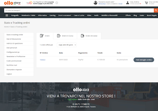 Ho ordinato Venerdì 24 Novembre 2017 un portatile MSI da Ollo store, tramite comunicazione mail, risposte veloci da parte degli operatori, ho accordato la sostituzione di un SSD interno con uno di dimensioni maggiori e dopo alcuni giorni di riflessione ho effettuato l'ordine, sempre tramite mail. Dalla mia pagina cliente risultava come tempi di consegna 4-8 giorni, quindi il pacco, alla peggio, sarebbe dovuto arrivare il 5 Dicembre. Il 4 Dicembre, non avendo ricevuto ancora nessuna notizia riguardo la spedizione ho inviato una mail al negozio, non ho ricevuto risposta, il giorno seguente, il 5, ho inviato un'altra mail per cercare di capire se il pacco fosse stato già spedito e il sito non fosse aggiornato o se dovesse ancora essere spedito. La sera del 5 ricevo una risposta in cui mi viene indicato che il pacco è stato appena consegnato al corriere, quindi l'ottavo giorno. Sicuramente la quantità di lavoro durante la settimana successiva il Black Friday ha rallentato le operazioni di tutti gli ordini ma un'avviso sarebbe stato gradito. Con 6 giorni di ritardo ricevo il pc l'11 Dicembre. Il prodotto è perfettamente conforme alle aspettative e già ora sto scrivendo questa recensione con esso, peccato che alcune scatole interne (quella dell'alimentatore) siano strappate, immagino che durante la sostituzione dell' SSD sia stata aperta con poca cautela inoltre il pacco regalo che doveva essere annesso al pc non corrispondesse a quello indicato nell'inserzione, invece di: zaino, tappetino, adesivi, mouse e gadget ho ricevuto uno zaino diverso e mancava completamente il mouse, anche qui un avviso sarebbe stato gradito. Ultima pecca è stato l'utilizzo di coupon e sconti newsletter che tramite mail mi era stato indicato come possibile ma al momento dell'ordine non mi è stato permesso di usufruire di nessun tipo di offerta. Esperienze che prese singolarmente non mi avrebbero infastidito ma nel complesso 6 giorni di ritardo, omaggi non conformi, sconti non applicabili e alcuni imballaggi danneggiati mi portano a valutare quest'esperienza come mediocre.
