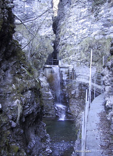 Read moreRisalendo la Val Bova nel parco omonimo, si parte da Crevenna. Ho parcheggiato presso il cimitero, posteggio senza limiti e senza pagare. Però c'è da fare un ripida salita per raggiungere poi la comoda strada sterrata che costeggia il torrente . Dopo circa 2,5 km si arriva al ponticello sul torrente Bova, dove ci si entra nel alveolo del torrente se non c'è troppo acqua. Poi salire dei gradini in cemento che porta alla passarelle di ferro. Questa costeggia il torrente fino al'inizio vero e proprio dell'orrido di Caino. Si sale su una scaletta in ferro e ci si addentra. Sempre se non c'è troppo acqua. La camminata fino all'orrido è piacevole e senza difficoltà adatta anche ai bambini. Si può evitare la breve ma ripida salita iniziale se si trova parcheggio direttamente in località Cà Nova. Cartelli indicatori per Ponte di Legno (o romano) per Orrido e per le scale...