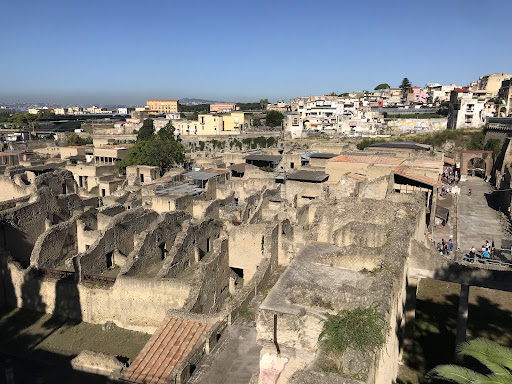 Read moreLe terme suburbane del complesso archeologico di Ercolano è il luogo meglio conservato del sito. Si eleva su due livelli da quello che era nel 79 d.c. il porto. Il mare, attualmente, è retrocesso di circa 400 metri. Sulla battigia e sotto le botteghe portuali furono rinvenuti più di 100 calchi (riprodotti e visibili) di quei cittadini che cercavano in mare la salvezza. Fu anche rinvenuta il fasciame quasi completo di una barca una cui copia è esposta nel locale museo. L'edificio delle terme è rimasto quasi miracolosamente intatto anche perché i sedimenti, accumulatosi nei secoli successivi in quella parte terminale della cittadina storica, erano...