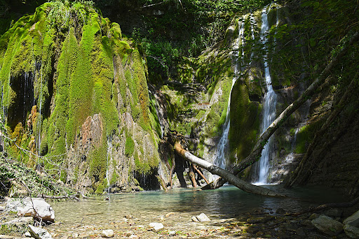 Very beautiful natural landmark. The double waterfall is aesthetic, the place is unspoiled, big, fallen logs are very picturesque. In addition, by the waterfall there's a big tufa wall, wet and...