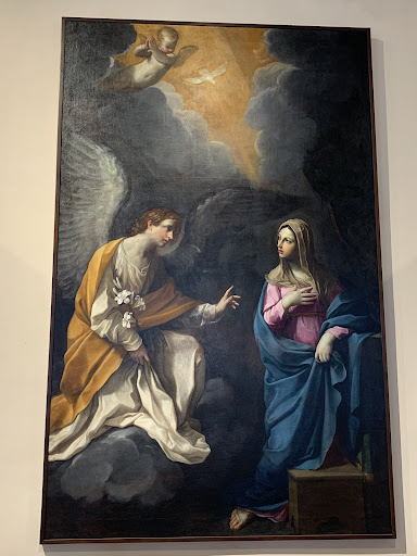 Si passa quindi al piano superiore dove sorge la Pinacoteca, piccola e pregevole raccolta di dipinti, come l’Annunciazione del 1621 di Guido Reni, L'angelo custode del 1641 di Giovanni Francesco Barbieri, detto Il Guercino, Davide con la testa di Golia, prima del 1627di Domenico Zampieri, detto il Domenichino.