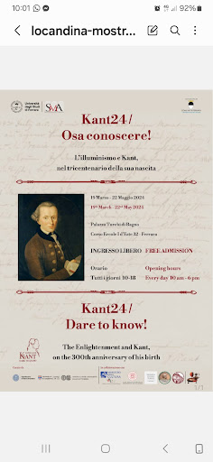 Read moreUna mostra dedicata ad uno dei più illustri filosofi di tutto il mondo . Fu il più significativo esponente dell'illuminismo tedesco . Immanuel Kant ,nati nel 1724 lo potrete conoscere meglio nel corso della mostra a lui dedicata dal 19 marzo al 19 maggio 2024 in cui troverete spiegati i fondamenti del suo pensiero e troverete esposti i libri originali . Una piccola ma grande mostra da non perdere all interno di un altra splendida ...