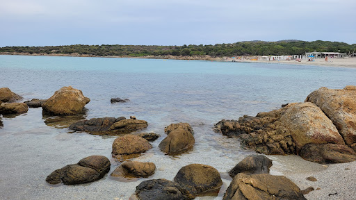 Hermosa playa que descubrimos en nuestra llegada a Cerdeña. Llegando al aeropuerto de Olbia, decidimos coger el coche de alquiler e ir a una playa directamente antes de hacer el check in en nuestro alojamiento. Se encuentra a unos 20 minutos desde el aeropuerto, tiene un parking de pago - con una tarifa bastante economica, si mal no recuerdo unos 3 euros por 3 horas - el señor que estaba ahi vigilando fue super amable, incluso nos hizo el cambio de un billete en monedas para poder pagar el parking. La entrada a la playa es bonita, un arco que pone el nombre de la misma. Y ya nada mas de entrar te encuentras directamente con esa arena blana y fina, y al final sus aguas azul cristalinas. Rentamos una sombrilla y un par de sillas y por la hora nos salió a 20 euros (la mitad del precio). Estuvimos solo unas 2-3 horas pero fue mas que magica para nuestra llegada. El agua del mar estaba deliciosa, algunas algas si, pero bueno, eso no tiene culpa nadie, es parte de la naturaleza. El personal que atiende muy amable. Tiene un chiringuito donde puedes comer y beber. Si te ubicas dentro de su zona te traen todo a donde tiene s la sombrilla - camareros a tu disposicion - la playa es pequeña pero perfecta! y hay alquiler de botes, paseos en veleros, paddlesurf.. en fin, recomendada totalmente!...