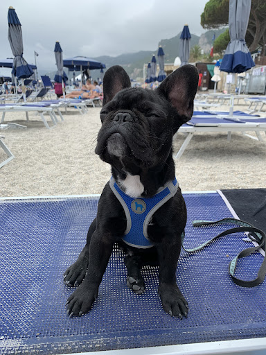 This is the best dog beach we found in Liguria. Extremly friendly staff, free gift at the entrance everytime (dogtreats, bowl, towel for dogs), free dogbowls with unlimited clean water, showers (for doggies also), free Wi-Fi. Toilets were a little quetionable. They desinfected and cleaned the beach multiple times a day. Sun umbrella is 10 euro a day (required for entrance) + sunbeds 20 euro for 2 people (not required). A few times they gave us sunbeds even for free! Very good food and drinks at the bar. Free parking is possible at white lines on the side of the road by the exit of the village, sometimes full, better to arrive early morning (8:00) especially on the weekend. Overall...