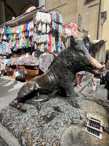 Read moreAfter Mercato Centrale, Mercato del Porcellino is another popular market to visit in Florence. It translates to 'Market of the Little Pig' because there is a bronze boar statue out in front. You're supposed to feed it a coin, and rub its snout for luck/make a wish. You can also do some shopping while you're at it. It's nowhere as big as Mercato Centrale, which can be a good thing. At Mercato Centrale, all the vendors are trying to get your business but here, you can kind of just walk around. There are way fewer stalls, so it's not as overwhelming. They do sell a lof of the same stuff as Mercato Centrale but you may find a few different items. I ended up seeing a wallet I liked/bought here, whereas I didn't see any I liked at Mercato Centrale. However, there are items that are more expensive at this market, so you really have to shop around, if you have the time. If you don't have time for both markets, I would say skip this one since the...