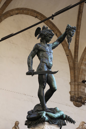 I was simply impressed by the casual, but powerful statue of Perseus standing over the slain body of Medusa with a mighty sword in his right hand and the grisly decapitated head of Medusa in his other hand. Violence and power somehow intertwined.