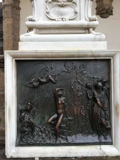 Read moreCollocata sotto la Loggia dei Lanzi, la scultura rappresenta Perseo in piedi sul corpo di Medusa, appena decapitata con la spada impugnata nella mano destra, mentre la sinistra solleva trionfante la testa del mostro tenuta per i capelli. Posta su un alto piedistallo ornato da bellissimi bronzetti (copie realizzate dalla Fonderia Artistica Ferdinando Marinelli di originali conservati al Bargello) è stata ideata in modo da guardare in basso verso lo spettatore. Insieme al gruppo del ratto delle Sabine, del Giambologna, è l'unica statua conservata nelle Logge dell'Orcagna ad essere stata concepita espressamente per quella collocazione. Sulla nuca della statua, in posizione estremamente defilata, è presente un dolente autoritratto di Cellini. Il piedistallo, rimosso nel XX secolo e sostituito con una copia, è un capolavoro in sé: nella finezza dei piccoli bronzetti rappresentanti divinità connesse al mito di Perseo si manifesta tutta l'abilità di Cellini orefice nel lavoro in piccola scala. Commissionata da Cosimo I dopo il suo insediamento come Duca della città, fu realizzata tra il 1545 e il 1554. La statua che si ammira oggi è quella originale ed è stata spostata solo in occasione di una profonda pulitura e restauro conclusosi nel 1998. Direttamente collegata per tema alla vicina Giuditta e Oloferne di Donatello, in realtà si discosta profondamente dalla misura del primo Rinascimento abbracciando lo spiccato titanismo tipico del periodo detto manierismo, quando gli scultori imitavano le grandiose opere di Michelangelo. Il Perseo ha anche un significato politico, come la maggior parte delle statue poste sulla piazza: rappresenta infatti l'affermazione del Duca che dà un "taglio" alle esperienze repubblicane, rappresentate da Medusa. Dal corpo di Medusa escono infatti i serpenti, allusione alle proverbiali discordie cittadine che avevano da sempre minato una vera democrazia. La critica è tutt'altro che unanime nell'acclamare il Perseo come un capolavoro del manierismo; si imputa alla statua la sua posa languida e l'eccessiva cura dei particolari, tipica dell'orafo che ha preso in ultimo il sopravvento sullo scultore. In particolare la critica mette in evidenza quanto i due bozzetti conservati, uno in cera e uno in bronzo, entrambi al Museo nazionale del Bargello, siano superiori per plastica ed...